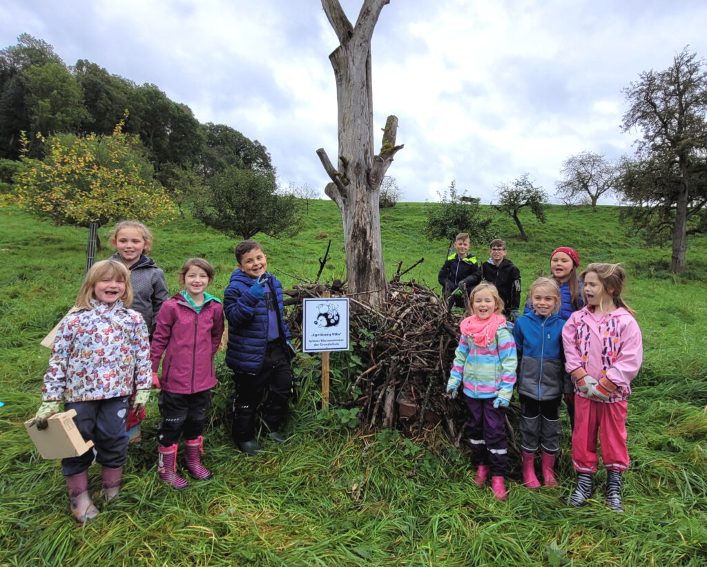 Im Herbst 2021 wurde ein weiteres Highlight am Baumlehrpfad errichtet: Ein Igelhotel. Dazu hatte eine Schul-AG eingeladen, die von Ute Hacker und Simone Traum geleitet wurde. Die Kinder schleppten Äste verschiedenster Größen heran und bauten aus den Tothölzern, die sie aufschichteten, ein wunderbares Winterquartier für unsere heimischen Igel. Wir sind schon gespannt zu beobachten, ob und von wem unser Igelhotel genutzt wird 🙂